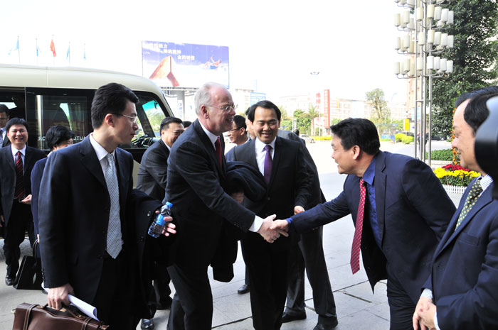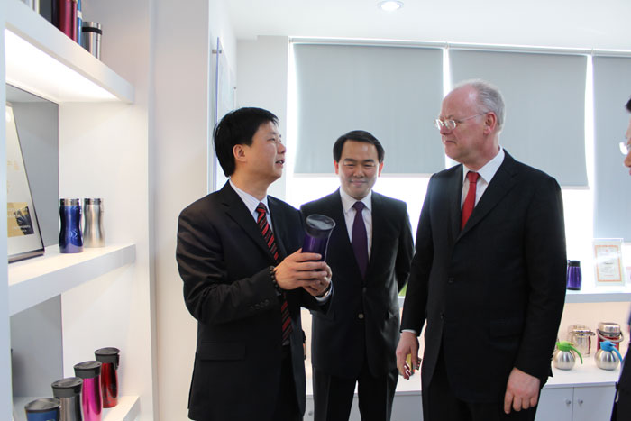 2月24日,中聯(lián)部副部長李進軍和德國社會民主黨前主席魯?shù)婪颉ど碃柶?/A>先生一行蒞臨揭陽金屬企業(yè)聯(lián)合會,揭陽市市長陳東、揭陽市金屬企業(yè)聯(lián)合會會長吳克東陪同參觀。