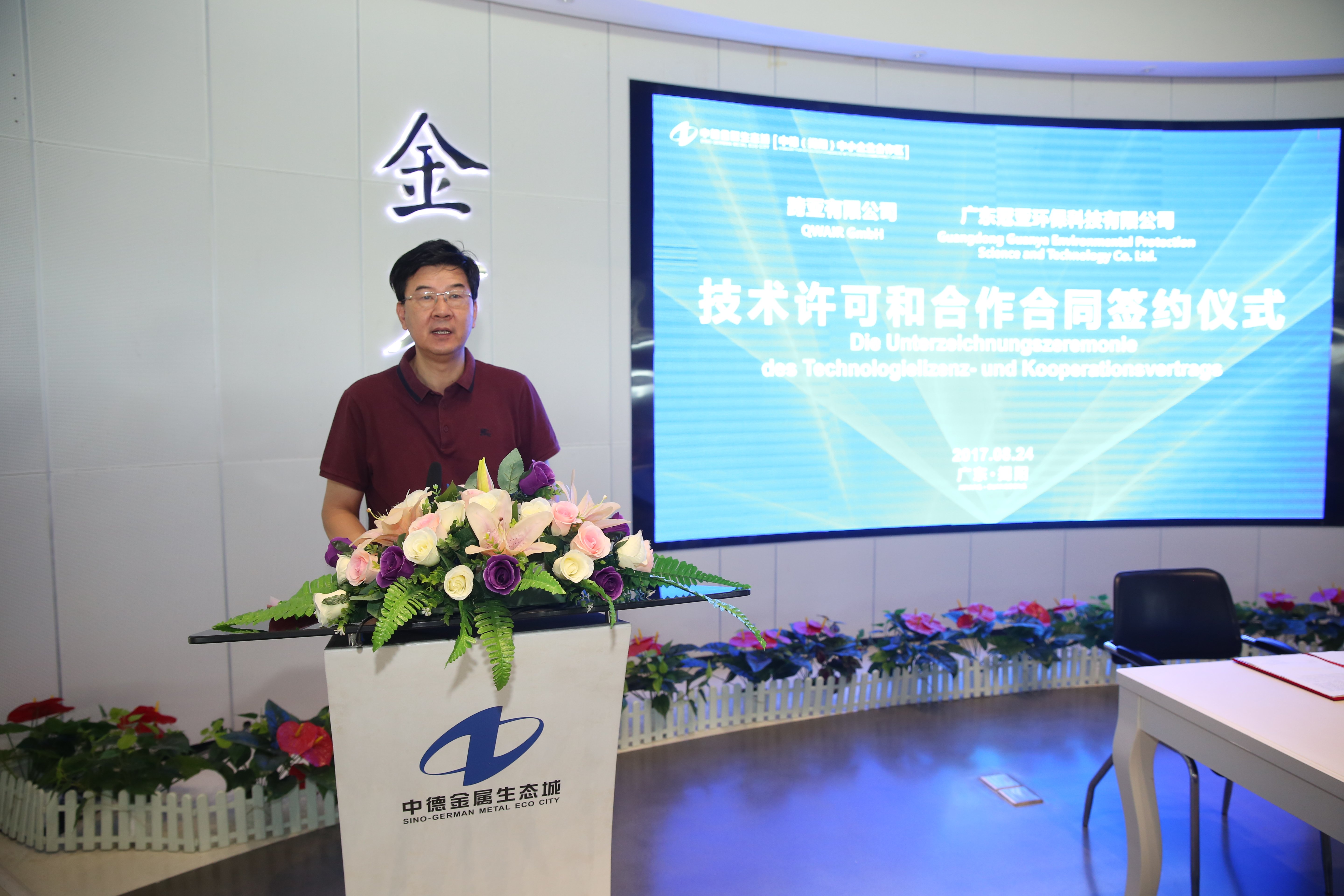 揭陽市金屬企業(yè)聯(lián)合會(huì)會(huì)長(zhǎng)、中德金屬集團(tuán)董事長(zhǎng)吳克東對(duì)出席簽約儀式的領(lǐng)導(dǎo)與嘉賓表示衷心感謝。他表示,中德金屬生態(tài)城在各級(jí)領(lǐng)導(dǎo)的關(guān)心和指導(dǎo)下上了一個(gè)新臺(tái)階,后續(xù)將繼續(xù)發(fā)揮德(歐)平臺(tái)的橋梁作用,推動(dòng)中外企業(yè)深入合作,全力引進(jìn)、研發(fā)最好技術(shù),降低環(huán)保處理成本,全面助力環(huán)保事業(yè)的發(fā)展。