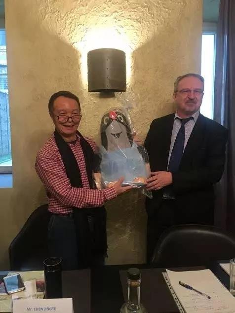 ▲捷方向金立方董事長贈(zèng)送禮物——捷克國家級(jí)卡通形象“小鼴鼠”,寓意中捷友誼長青