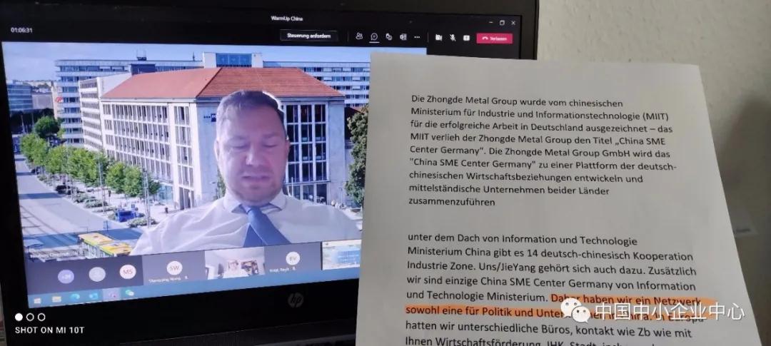 中國中小企業(yè)中心(德國)項目總監(jiān)丁宇在線上發(fā)言提到,中德金屬集團憑借中德交流合作成效而受到中國工業(yè)和信息化部(MIIT)的認可,集團駐柏林辦事處由此獲授 “中國中小企業(yè)中心(德國)”的稱號。中德金屬集團將積極發(fā)揮自身德歐資源優(yōu)勢,把中國中小企業(yè)中心(德國)發(fā)展成為中德經貿合作平臺,將兩國的中小型企業(yè)匯聚一起,互促共進。中國中心將為中國中小企業(yè)提供金融、投資、法律、財務、人力資源、知識產權等服務,同時為有意來華投資的德(歐)中小企業(yè)邁進中國市場提供渠道,吸引更多國外創(chuàng)新要素涌入中國市場。