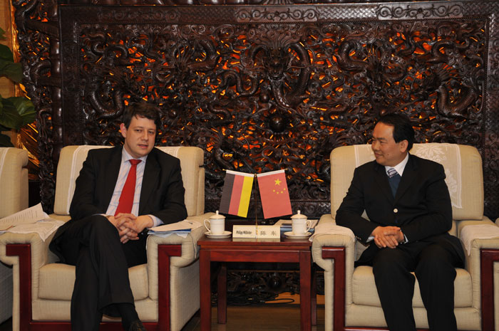 4月10日下午,陳東市長(zhǎng)率領(lǐng)揭陽(yáng)市金屬聯(lián)合會(huì)企業(yè)家代表團(tuán)與德國(guó)基民盟主席團(tuán)成員、德國(guó)聯(lián)邦議院聯(lián)盟黨黨團(tuán)外交政策發(fā)言人、德國(guó)青年聯(lián)盟主席菲利普·米斯菲爾德先生率領(lǐng)的德國(guó)基民盟企業(yè)家代表團(tuán)在北京進(jìn)行會(huì)談。