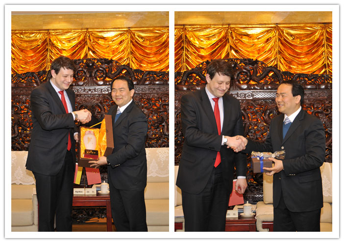 陳東市長(zhǎng)對(duì)米斯菲爾德及德國(guó)企業(yè)家代表來(lái)華考察訪問表示歡迎,高度贊賞米斯菲爾德在推動(dòng)中德合作和中德友誼上做出的突出貢獻(xiàn)。陳東市長(zhǎng)表示,德國(guó)是工業(yè)發(fā)達(dá)、科技先進(jìn)的國(guó)家,在循環(huán)經(jīng)濟(jì)、生態(tài)環(huán)保及城市建設(shè)等方面有許多創(chuàng)新舉措和成功經(jīng)驗(yàn),值得我們學(xué)習(xí)和借鑒,在向德國(guó)代表團(tuán)詳細(xì)介紹了揭陽(yáng)市基本情況以及中德金屬生態(tài)城項(xiàng)目在與德方共建產(chǎn)業(yè)大學(xué)、研究院、工業(yè)設(shè)計(jì)院和品牌推廣平臺(tái)上的實(shí)質(zhì)性進(jìn)展后,陳東市長(zhǎng)向米斯菲爾德發(fā)出帶團(tuán)考察揭陽(yáng)進(jìn)一步深度合作的邀請(qǐng)。米斯菲爾德對(duì)陳東市長(zhǎng)的熱情接待表示感謝,并表示他多次來(lái)華考察訪問印象都非常深刻。在聽完陳東市長(zhǎng)介紹中德金屬生態(tài)城項(xiàng)目后,米斯菲爾德表示揭陽(yáng)擁有很好的金屬產(chǎn)業(yè)基礎(chǔ),希望雙方能就金屬生態(tài)城建設(shè)展開合作,并對(duì)陳東市長(zhǎng)發(fā)出訪問揭陽(yáng)的邀請(qǐng)表示感謝,在德國(guó)大選過(guò)后他將率團(tuán)訪問揭陽(yáng),共同探討和深度推進(jìn)德國(guó)企業(yè)與揭陽(yáng)企業(yè)的深度合作。