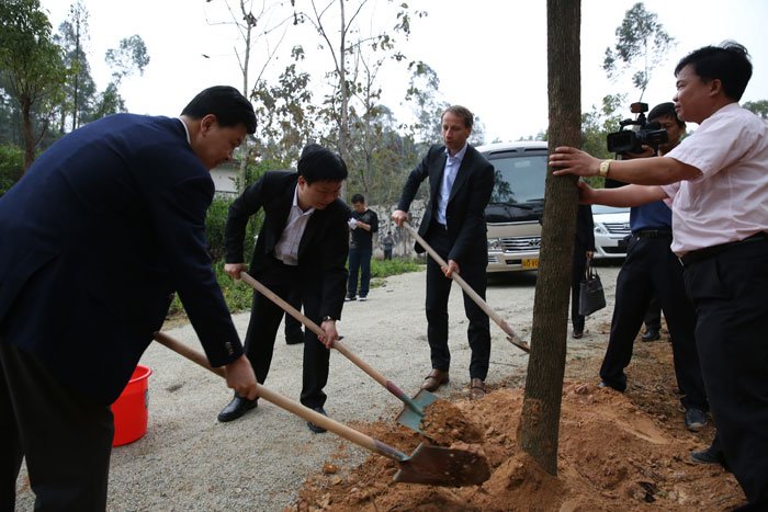 陳定雄副市長(zhǎng)、史偉浩、中德金屬集團(tuán)總裁在中德金屬生態(tài)城萬畝森林公園植樹