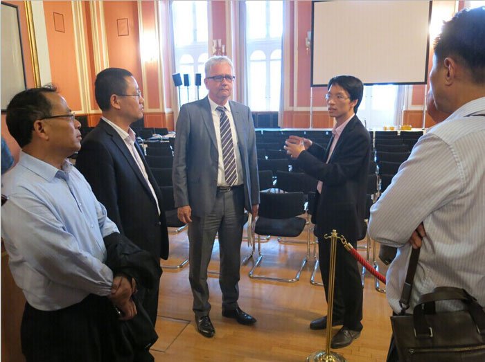 16日上午,代表團(tuán)抵達(dá)WISTA管理公司開始展開培訓(xùn)。WISTA公司總裁Hardy Schmitz先生對(duì)代表團(tuán)的到來表示歡迎。在簡(jiǎn)要敘述了培訓(xùn)流程后,WISTA公司對(duì)外事務(wù)部紐曼博士詳細(xì)介紹了Adlershof科技園的發(fā)展情況、總體規(guī)劃以及不同階段的園區(qū)定位,并與代表團(tuán)做進(jìn)一步的交流探討。隨后,代表團(tuán)現(xiàn)場(chǎng)播放了中德金屬生態(tài)城的宣傳片,全面展示項(xiàng)目的發(fā)展進(jìn)程,還充分解答了WISTA公司關(guān)于項(xiàng)目的SWOT分析方面提出的大量問題。