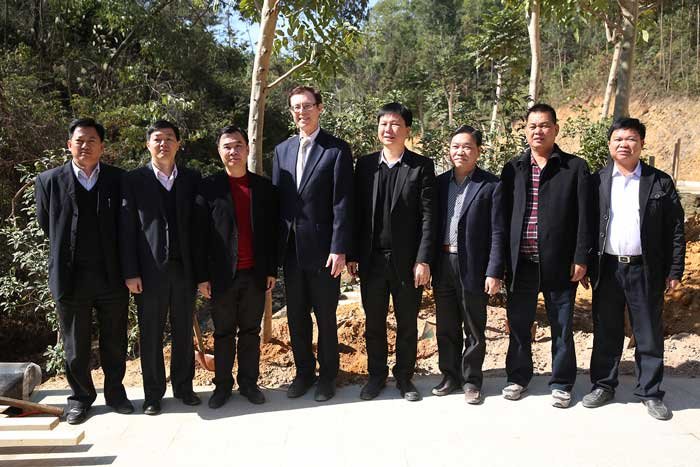 呂海慕與揭陽(yáng)有關(guān)領(lǐng)導(dǎo)、中德金屬集團(tuán)董事長(zhǎng)吳克東在萬(wàn)畝森林公園植樹后合影