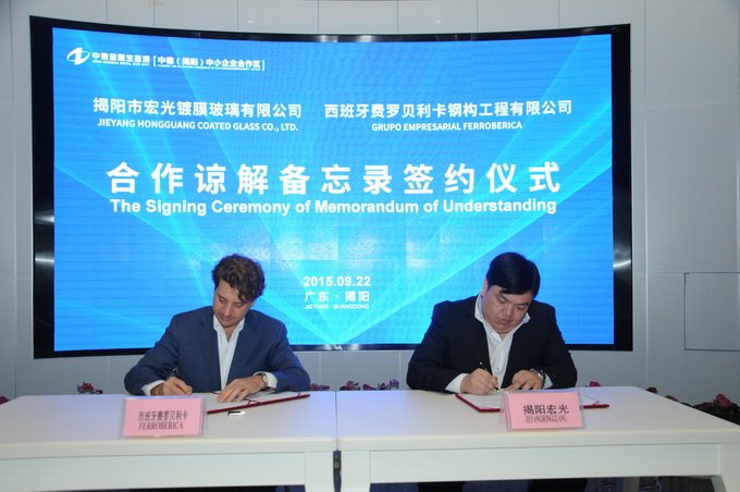 市宏光鍍膜玻璃有限公司與西班牙費(fèi)羅貝利卡鋼構(gòu)工程有限公司簽署合作諒解備忘錄