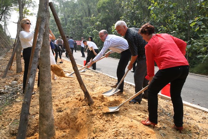 德國(guó)中小企業(yè)經(jīng)理人一行與揭陽(yáng)市領(lǐng)導(dǎo)及企業(yè)家在中德萬畝森林公園共植友誼樹