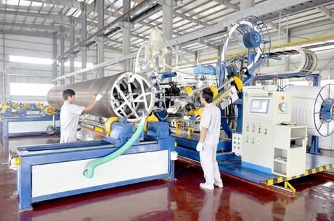 作為中德金屬生態(tài)城首批入駐的中德合資企業(yè),保庫智能將把德國保庫豐富的應用經驗特別是城市地下蓄洪管網和反滲排水管網的應用帶到中國,這將有助于把傳統(tǒng)的現代化城市升級成可智能利用水資源的“海綿型”城市,其市場十分廣闊。該項目的第一條生產線正在進行最后調試,預計12月份即可正式投產。在公司的遠期計劃中,這種采用德國先進設備和工藝、具有節(jié)能環(huán)保等特點的生產線還將增加至5條,預計年產量2萬噸,年產值超6億元。