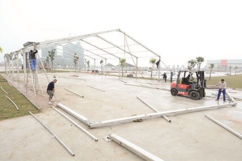 購物節(jié)布展工作由活動主辦方之一、具有十多年大型展會豐富舉辦經驗的揭陽日報社承擔。1月4日,在活動場地平整基本完成后,布展工作已緊鑼密鼓跟進,預計1月8日可完成展館搭建,F場布展管理負責人表示,將高標準、高質量、高效率推進布展工作,力爭1月12日供參展商家進場陳列商品。