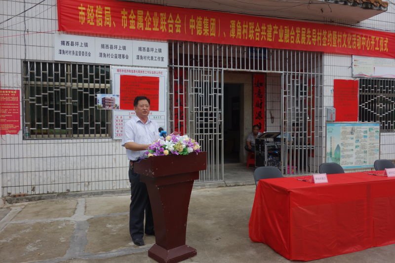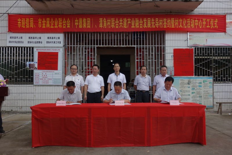 根據(jù)揭陽(yáng)市委、市政府關(guān)于動(dòng)員市社會(huì)組織參與精準(zhǔn)扶貧的指示精神,9月6日上午,市經(jīng)信局、市金屬企業(yè)聯(lián)合會(huì)、中德金屬集團(tuán)與揭西縣坪上鎮(zhèn)潭角村聯(lián)合舉行共建產(chǎn)業(yè)融合發(fā)展先導(dǎo)村簽約暨村文化活動(dòng)中心開工儀式,爭(zhēng)取把該村打造成揭陽(yáng)互聯(lián)網(wǎng)+精準(zhǔn)扶貧、精準(zhǔn)脫貧的示范村,推動(dòng)貧困戶早日脫貧致富。