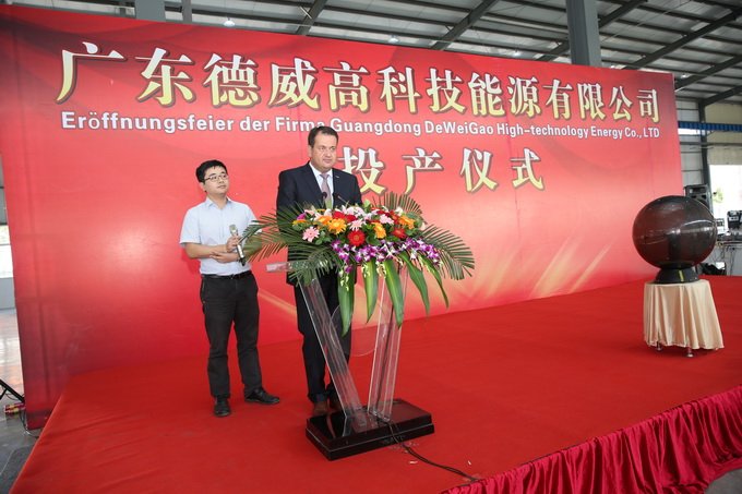 投產(chǎn)儀式上,市政府副秘書長李志堅表示,近年來,揭陽深入貫徹“一帶一路”和“創(chuàng)新驅(qū)動”發(fā)展戰(zhàn)略,不斷深化對德合作,全方位支持中德金屬生態(tài)城建設(shè)。如今,園區(qū)建設(shè)全面加快,入園企業(yè)德威高公司的投產(chǎn)便是一個很好的范例。當(dāng)前,國家高度重視并鼓勵資源的循環(huán)利用和環(huán)境保護,資源高效利用的市場十分廣闊。他希望德威高公司要以投產(chǎn)運行為起點,瞄準國際一流,依托中德金屬生態(tài)城這一平臺,深化與德國等發(fā)達國家的技術(shù)合作,把企業(yè)打造成為資源高效開發(fā)利用的先行者。他還強調(diào),各級有關(guān)部門要進一步強化服務(wù)意識,為公司創(chuàng)造寬松的發(fā)展環(huán)境,推動更多中德合作項目落地。